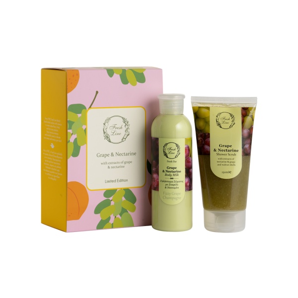 • Grape & Nectarine Body Milk 200ml: Qumësht trupi me teksturë kremoze, i pasuruar me vaj bajamesh, vaj avokadoje, vaj luledielli dhe vitaminë E, që hidraton në thellësi dhe i jep lëkurës butësi dhe elasticitet.